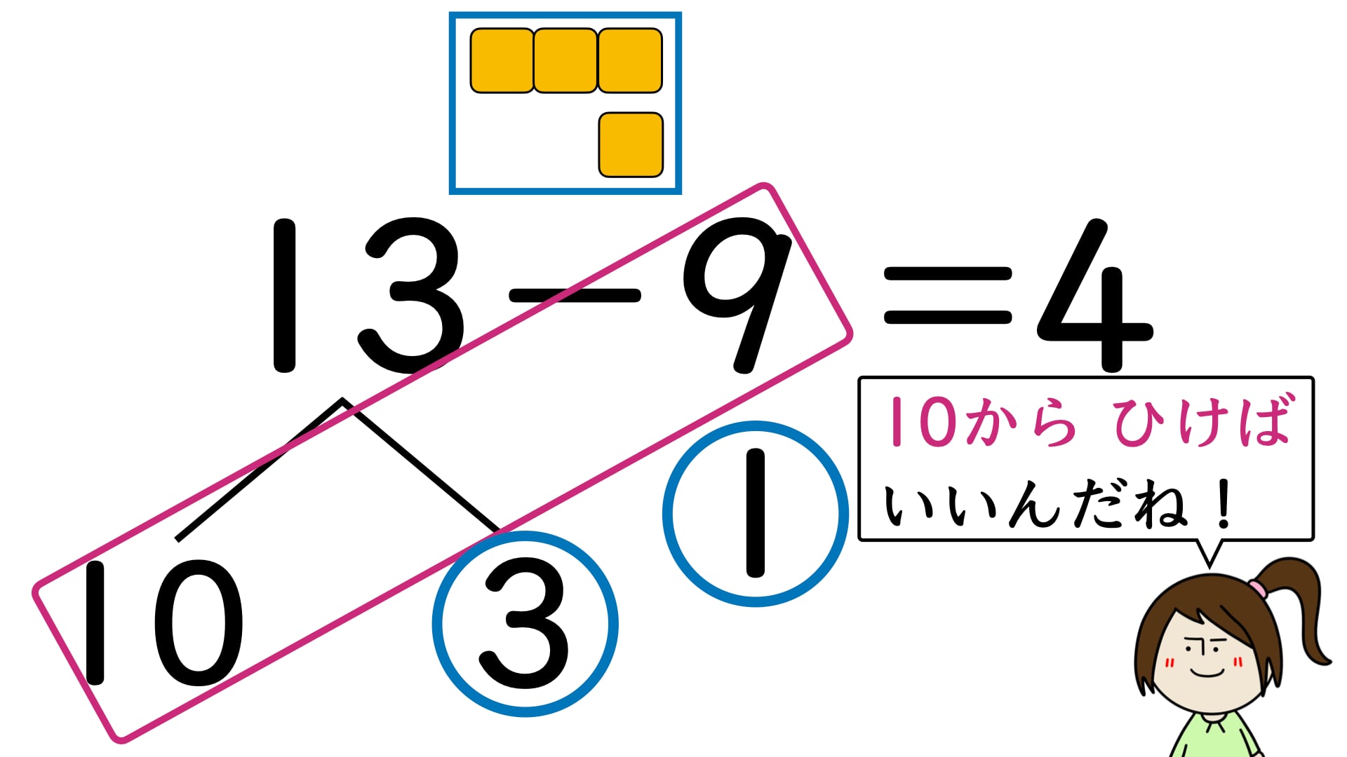 1 繰り下がりのひき算(減加法) 39ページ